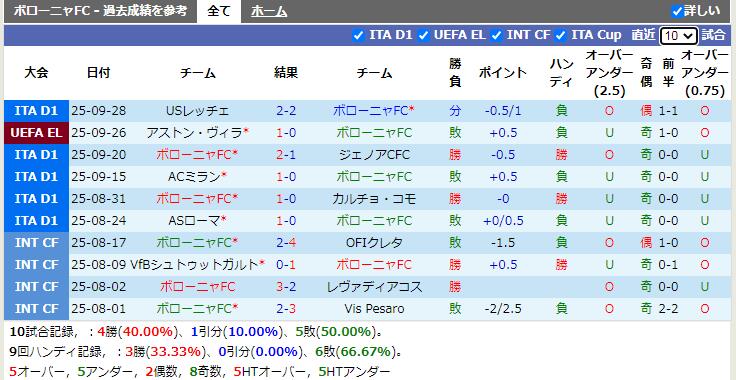 ボローニャFC1909は平均的な成績で、ホームでは堅実なパフォーマンスと安定した守備を誇りますが、攻撃力に欠け、総合的な強さは比較的均衡しています。
