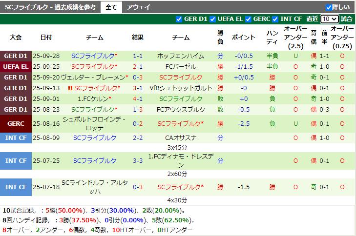 SCフライブルクも平均的な成績で、アウェイではまずまずのパフォーマンスと高い攻撃効率を誇りますが、守備面では脆弱性があり、総合的な強さは対戦相手に匹敵します。
