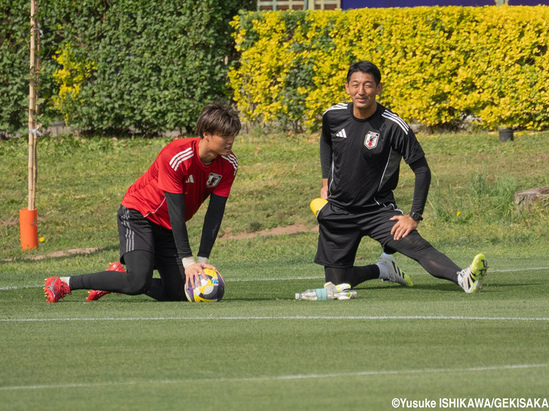 U-20W杯のグループリーグで3連勝した日本は、決勝トーナメント進出を決めた。第3節・ニュージーランド戦の翌日はバス移動を経て午後から練習。ほぼ全員が軽めのリカバリーを行うなか、中村は高原寿康GKコーチとともに汗を流した。