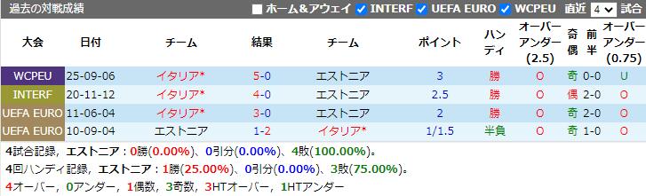 エストニアは直近4試合で未勝利(3敗)で、イタリアは3連勝中だ。