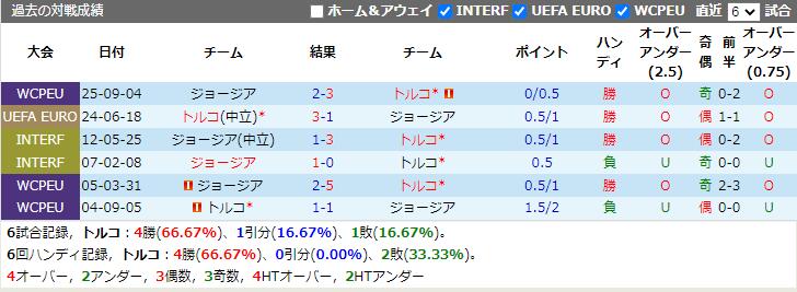 さらに、トルコはジョージアとの過去2回の対戦で勝利を収めています。