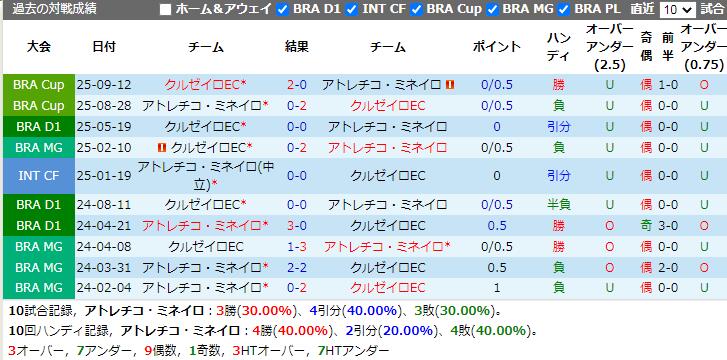 クルゼイロの総合的な強さ、最近の成績、そしてアトレチコ・ミネイロの攻撃面での苦戦を考慮すると、クルゼイロは質の高いアドバンテージを活かしてアウェイで無敗を維持できると予想されます。