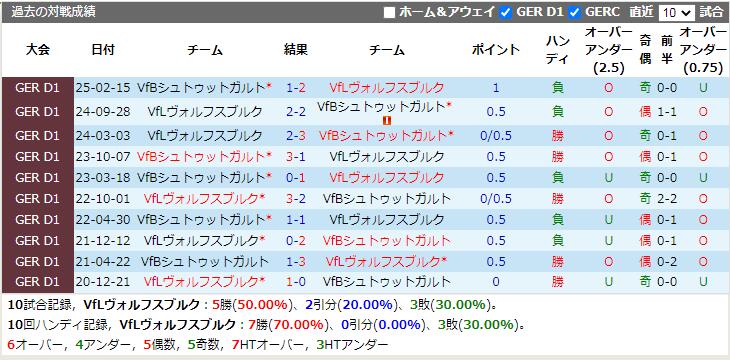 VfLヴォルフスブルク VS VfBシュトゥットガルト 試合予想