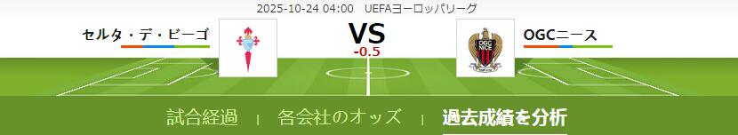 - 10 セルタ・デ・ビーゴ VS OGCニース 予想、対戦成績、最新情報2025/10/24