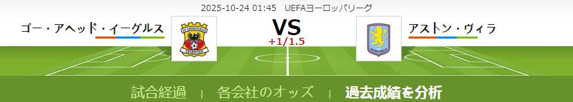 ゴー・アヘッド・イーグルス VS アストン・ヴィラ 試合予想