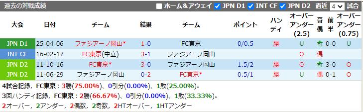 さらに、過去の対戦成績を見ると、今シーズンのホームでの第1戦はファジアーノ岡山が勝利したものの、FC東京は通算3勝1敗と圧倒的に優位に立っており、心理的な安心感を与えています。