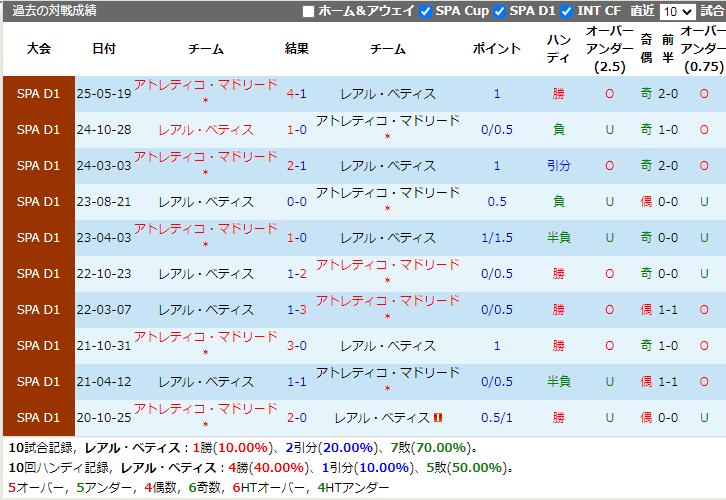 両チームの直近10回の対戦成績を見ると、アトレティコ・マドリードが優勢と言える。