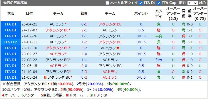 アタランタ BC VS ACミラン 試合予想