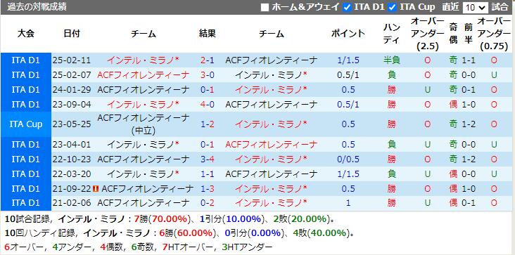 ACFフィオレンティーナはインテル・ミラノとの過去49回の対戦でわずか9勝30敗と、明らかに精神的に不利な状況にある。