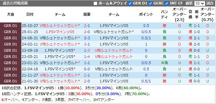 1.FSVマインツ05 VS VfBシュトゥットガルト 試合予想