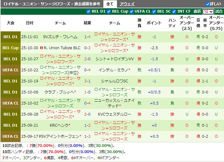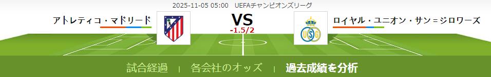 両チームの最近の成績を見ると、アトレティコ・マドリードは直近4試合のうち3試合に勝利し、ロワイヤル・ユニオン・サン=ジロワーズは直近5試合のうち4試合に勝利しています。