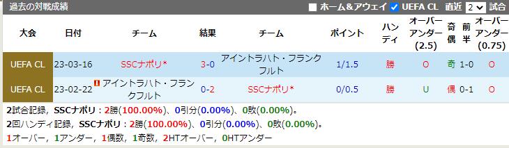 両チームの最近の成績を見ると、SSCナポリは直近3試合無敗、アイントラハト・フランクフルトも直近3試合無敗となっている。
