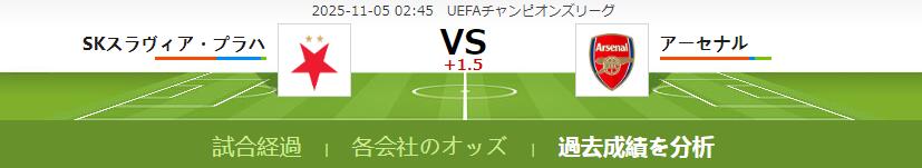 SKスラヴィア・プラハ VS アーセナル 試合予想
