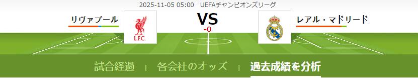 リヴァプールは現在、チャンピオンズリーグで2勝1敗の成績を収めています。一方、レアル・マドリードはチャンピオンズリーグ3試合全勝し、力強い攻撃力を見せています。
