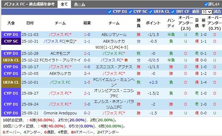 試合予想:パフォスFC +1.25