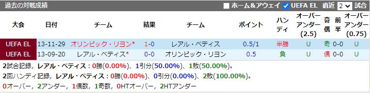 レアル・ベティス VS オリンピック・リヨン 試合予想