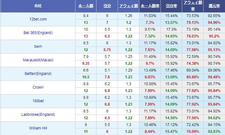 アウェイ側のAHラインは-2.0で、FCバイエルン・ミュンヘンに有利です。