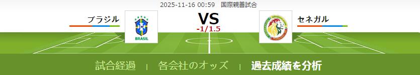 最近の成績を比較すると、ブラジルは直近3試合で2敗を喫していますが、セネガルは現在4連勝と好調です。