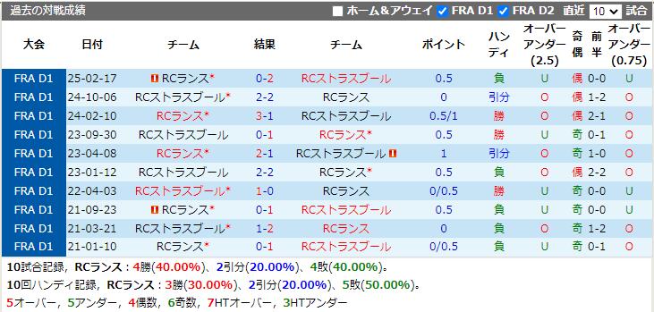 総合力とリーグ順位で見ると、両チームの差は非常に小さい。RCランスは勝ち点25で3位、RCストラスブールは勝ち点22で4位となっている。