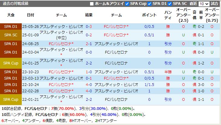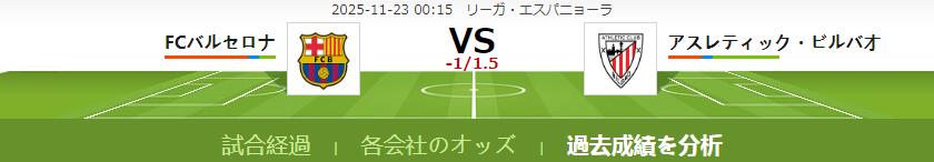 アスレティック・ビルバオのアウェイ戦の成績が低迷していることを考えると、この試合はFCバルセロナの勝利が予想されます。
