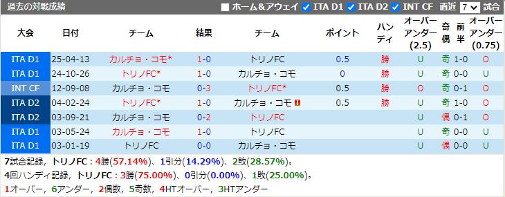 最近の成績を見ると、トリノFCは過去6試合無敗、カルチョ・コモは過去10試合無敗だ。
