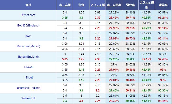 アウェイマーケットでは、この試合でアウェイチームの-0/0.5が提示されている。