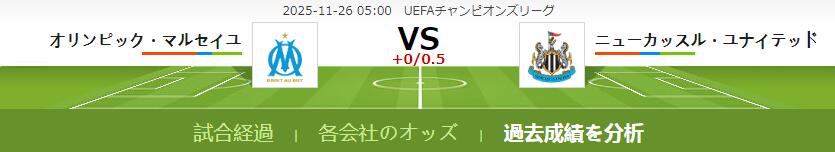 オリンピック・マルセイユ VS ニューカッスル・ユナイテッド 試合予想