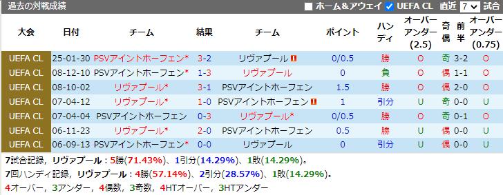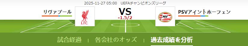 リヴァプール VS PSVアイントホーフェン 試合予想