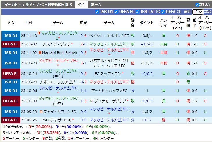 さらに、マッカビ・テルアビブFCは今シーズンのUEFAヨーロッパリーグで低迷しており、未だ勝利を収めていません。