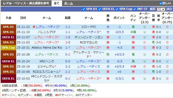 レアル・ベティスはUEFAヨーロッパリーグ初戦でノッティンガム・フォレストとホームで2-2の引き分けに終わった後、UEFAヨーロッパリーグ直近3試合で無失点を記録しています。