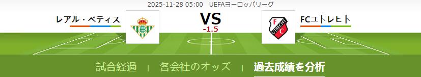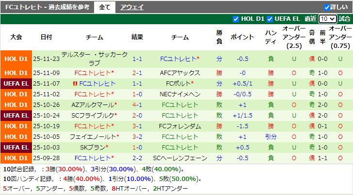 一方、FCユトレヒトはアウェイでの成績が悪く、直近6試合のうち5試合で敗れており、UEFAヨーロッパリーグでの攻撃面のパフォーマンスは非常に低迷しています。