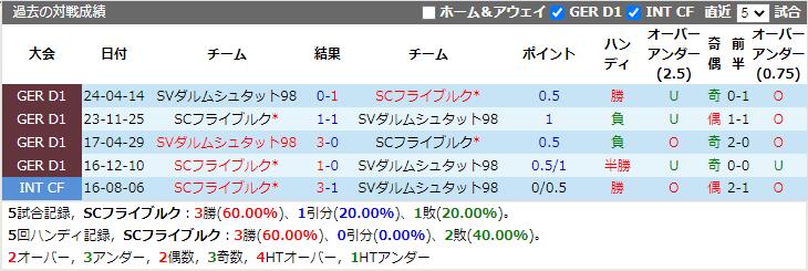SCフライブルク VS SVダルムシュタット98 試合予想