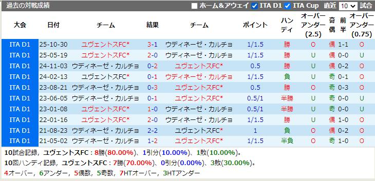 ユヴェントスFCを応援するホームチームのAHラインは-1.25です。