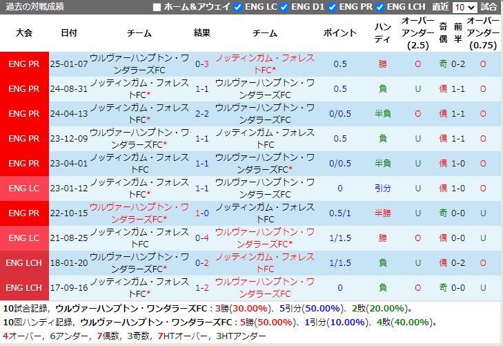 両チームの最近の成績を見ると、ウォルヴァーハンプトン・ワンダラーズFCは公式戦7連敗と低迷している。一方、ノッティンガム・フォレストFCは直近4試合で3勝を挙げている。