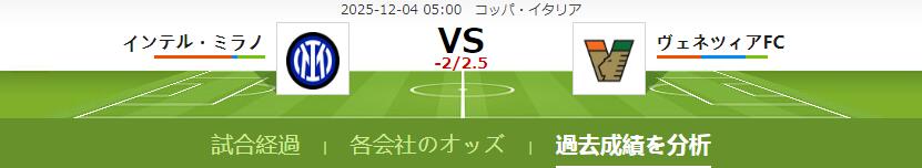 インテル・ミラノ VS ヴェネツィアFC 試合予想