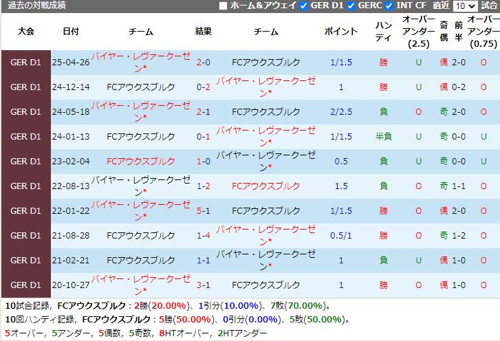 FCアウクスブルク VS バイヤー・レヴァークーゼン 試合予想