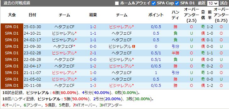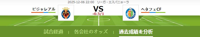 過去10試合の対戦成績は、ビジャレアルが6勝4分けと圧勝しています。