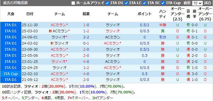 ラツィオ VS ACミラン 試合予想