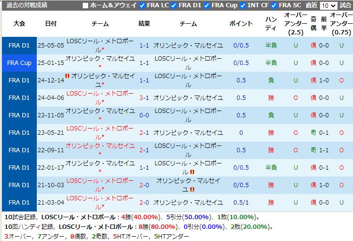 オリンピック・マルセイユは対戦成績で不利ですが、ブックメーカーはこの試合でLOSCリール・メトロポールに明確な支持を与えていません。