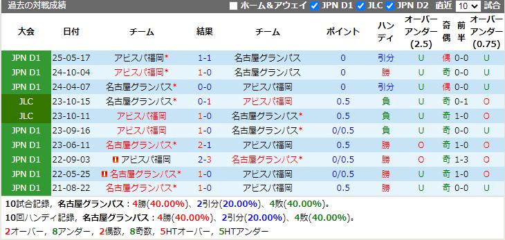 両チームの直接対決成績では、名古屋グランパスが優勢です。
