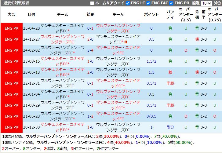 試合予想:マンチェスター・ユナイテッド -0.75