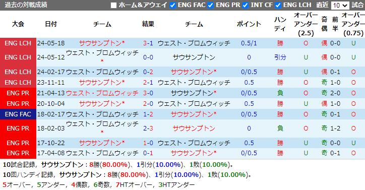 サウサンプトン VS ウェスト・ブロムウィッチ 試合予想