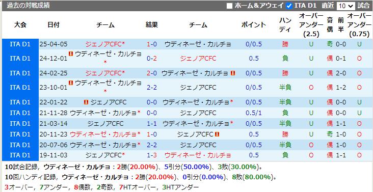 さらに、過去の対戦成績は明らかにジェノアに有利であり、心理的に優位に立っています。