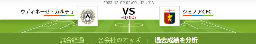 ウディネーゼ・カルチョ VS ジェノアCFC 試合予想