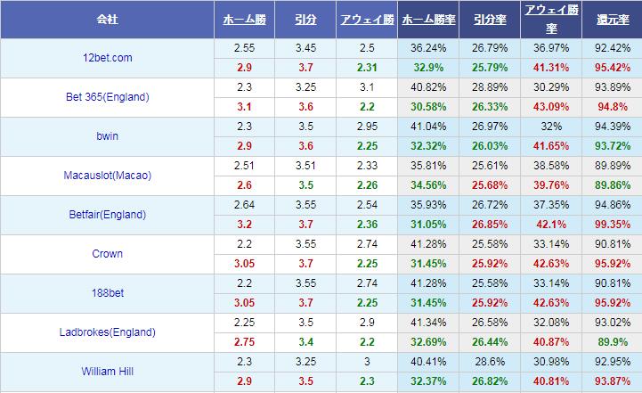 現在、オッズではアウェイチームに-0.25のハンディキャップが与えられている。