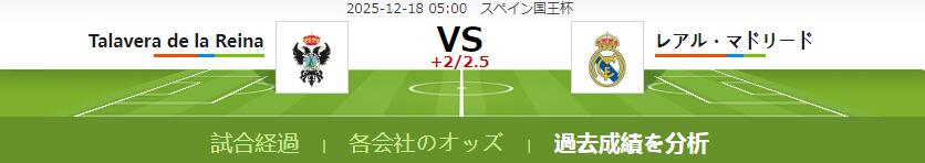 Talavera de la Reina VS レアル・マドリード 試合予想