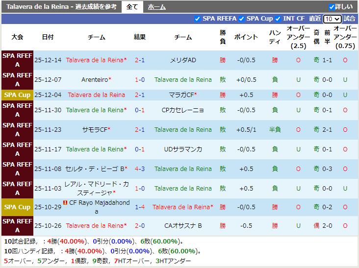 最近の成績を比較すると、タラベラ・デ・ラ・レイナは直近8試合で2勝6敗と苦戦している。