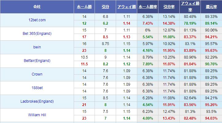 現在のアウェーチームのオッズは-2.25となっている。