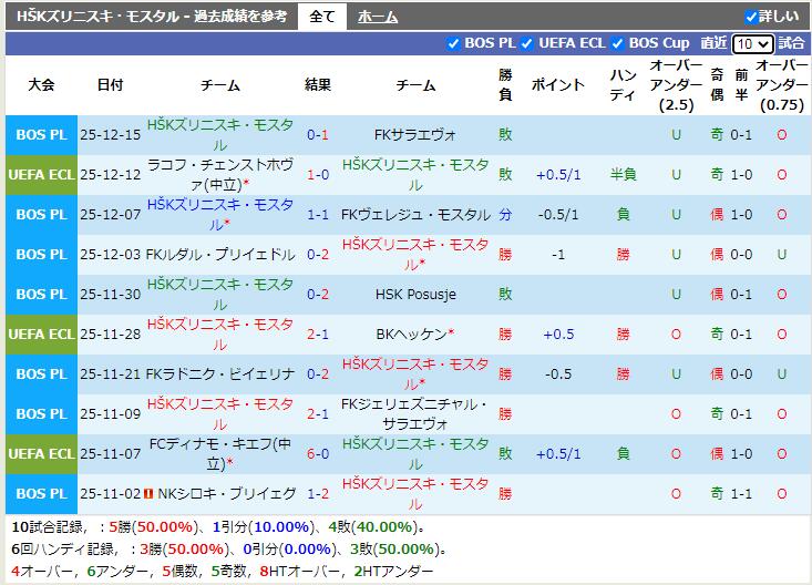 試合予想:HŠKズリニスキ・モスタル -0.5