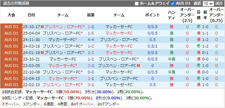 直近の成績を見ると、マッカーサーFCは過去5試合で4試合無敗、ブリスベン・ロアーFCは過去6試合無敗を維持しています。